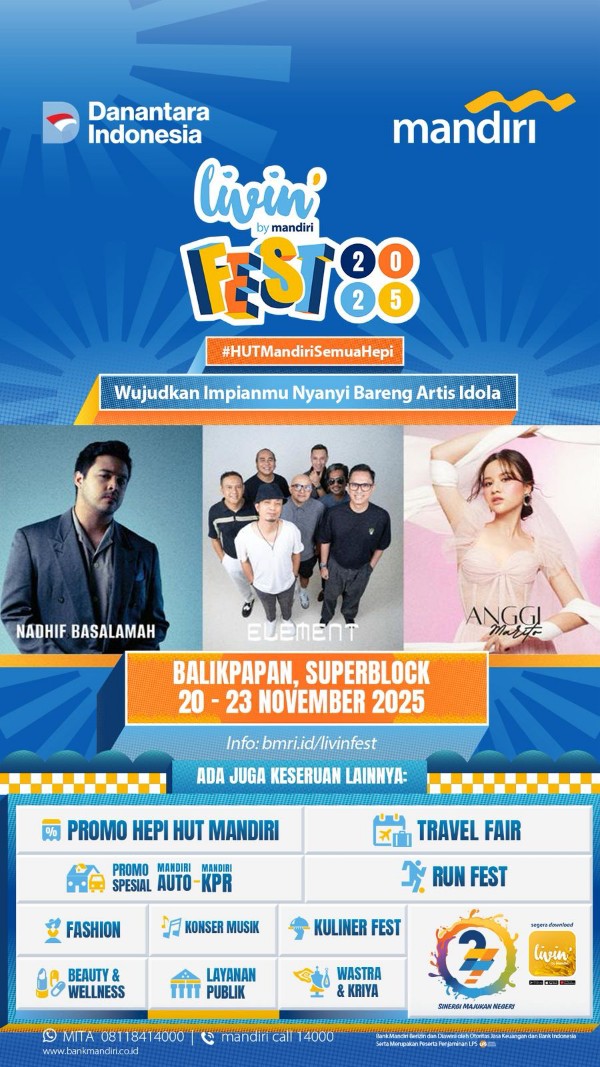 Livin’ Fest 2025 akan digelar selama empat hari berturut-turut pada 20-23 November 2025 di Kompleks Balikpapan Superblock (BSB).
