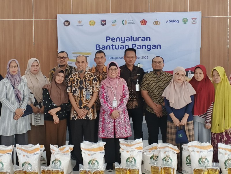 Di Balikpapan, Penyaluran Bantuan Pangan secara simbolis dilaksanakan di Aula Kelurahan Gunung Bahagia, Kamis (30/10/2025).