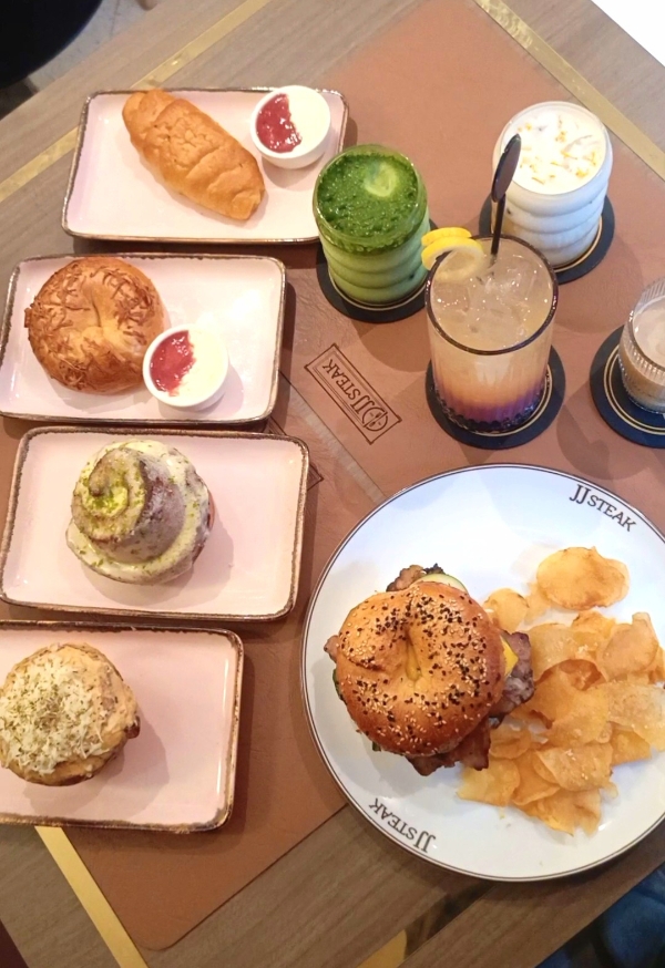 Menu brunch yang tersedia antara lain bagel, focaccia, brownies, dan cinnamon roll. Menu ini hanya disajikan dari pukul 10.00 hingga 12.00 siang. Setelah itu, pengunjung dapat menikmati berbagai main course reguler. Selain brunch, cabang ini juga menyediakan menu kopi spesial yang tidak tersedia di cabang JJ Steak lain.