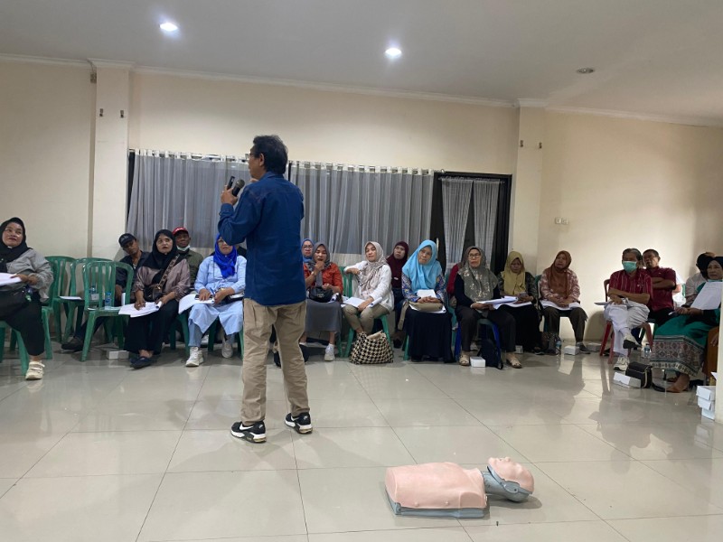 Antusiasme peserta terlihat sejak awal kegiatan. Warga berlatih langsung menggunakan manekin peraga, mempraktikkan tekanan dada dan pernapasan buatan dengan bimbingan instruktur.