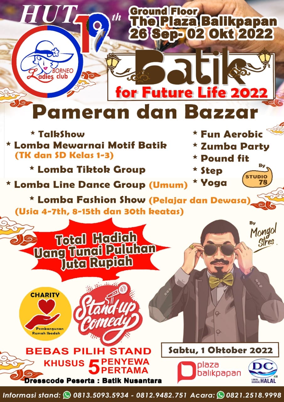 IKNBISNIS.COM, BALIKPAPAN-Berperan aktif melestarikan warisan budaya sekaligus mendukung percepatan pertumbuhan ekonomi pasca dipukul mundur pandemi Covid-19, organisasi sosial Borneo Ladies Club (BLC) menggelar Batik for Future Life and Charity. Sebuah ajang peragaan busana dan pameran produk dagang yang akan digelar di Ground Floor Plaza Balikpapan, 26 September-2 Oktober 2022.