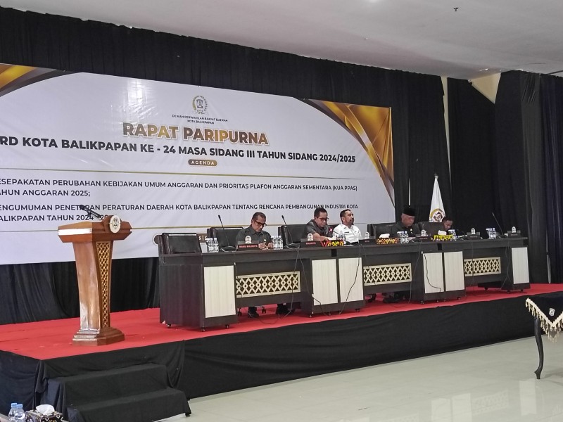 IKNBISNIS.COM, BALIKPAPAN – DPRD Kota Balikpapan melaksanakan Rapat Paripurna ke-24 Masa Sidang III Tahun Sidang 2024/2025 dengan agenda kesepakatan Perubahan Kebijakan Umum Anggaran Dan Prioritas Plafon Anggaran Sementara (KUA-PPAS) Tahun Anggaran 2025 dan pengumuman Penetapan Peraturan Daerah (Perda) Kota Balikpapan Tentang Rencana Pembangunan Industri Kota Balikpapan Tahun 2024-2044.