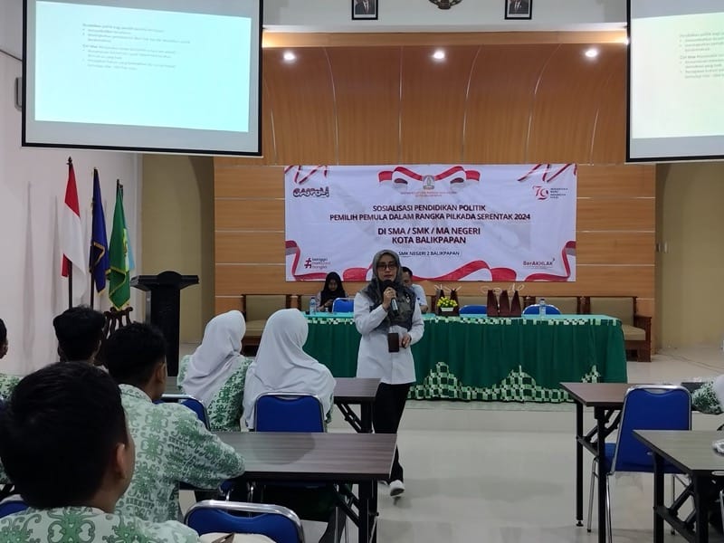 Kali ini dengan menyasar para pemilih pemula yang para pelajar. Divisi Teknis Penyelenggara KPU Kota Balikpapan Farida Asmauanna menjadi narasumber dalam Sosialisasi Pendidikan Politik yang diinisiasi oleh Kesbangpol Balikpapan.
