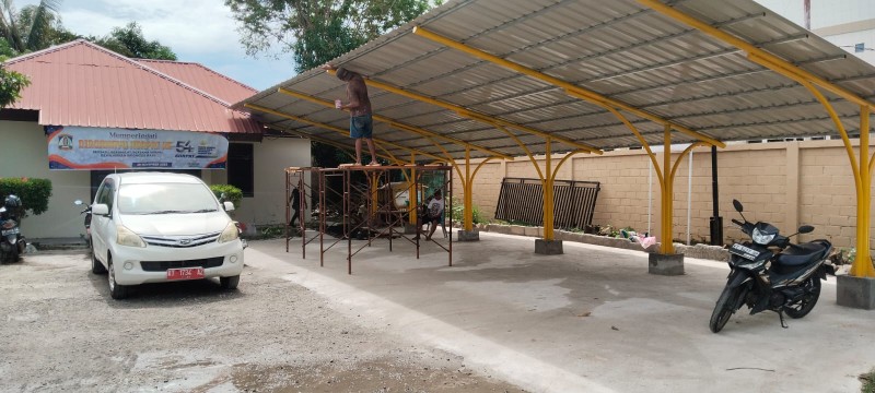 Area parkir tersebut kini telah dilengkapi atap pelindung, sehingga kendaraan warga maupun tamu kelurahan tidak lagi terpapar panas dan hujan secara langsung.