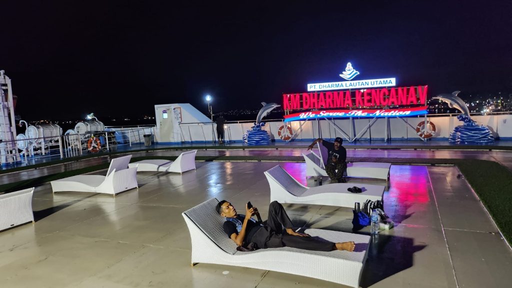 Sesampainya di deck penumpang, berbagai fasilitas langsung memanjakan mata.