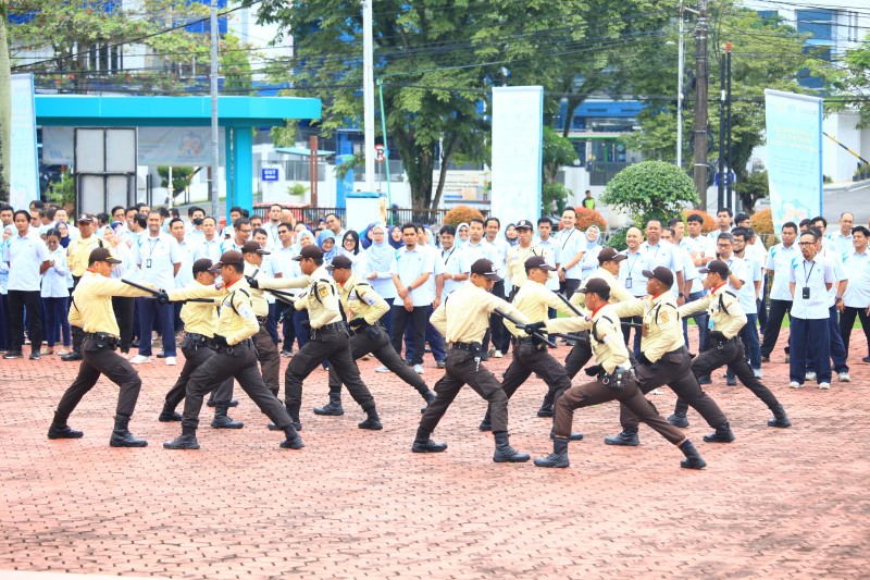 Selain pelaksanaan apel, kegiatan ini turut dimeriahkan dengan penampilan Tim Security PLN yang menampilkan peragaan keterampilan dan kesiapsiagaan pengamanan. Peragaan tersebut meliputi teknik pengamanan dasar, bela diri, serta simulasi pengendalian situasi darurat sebagai bagian dari upaya menciptakan lingkungan kerja yang aman dan kondusif.